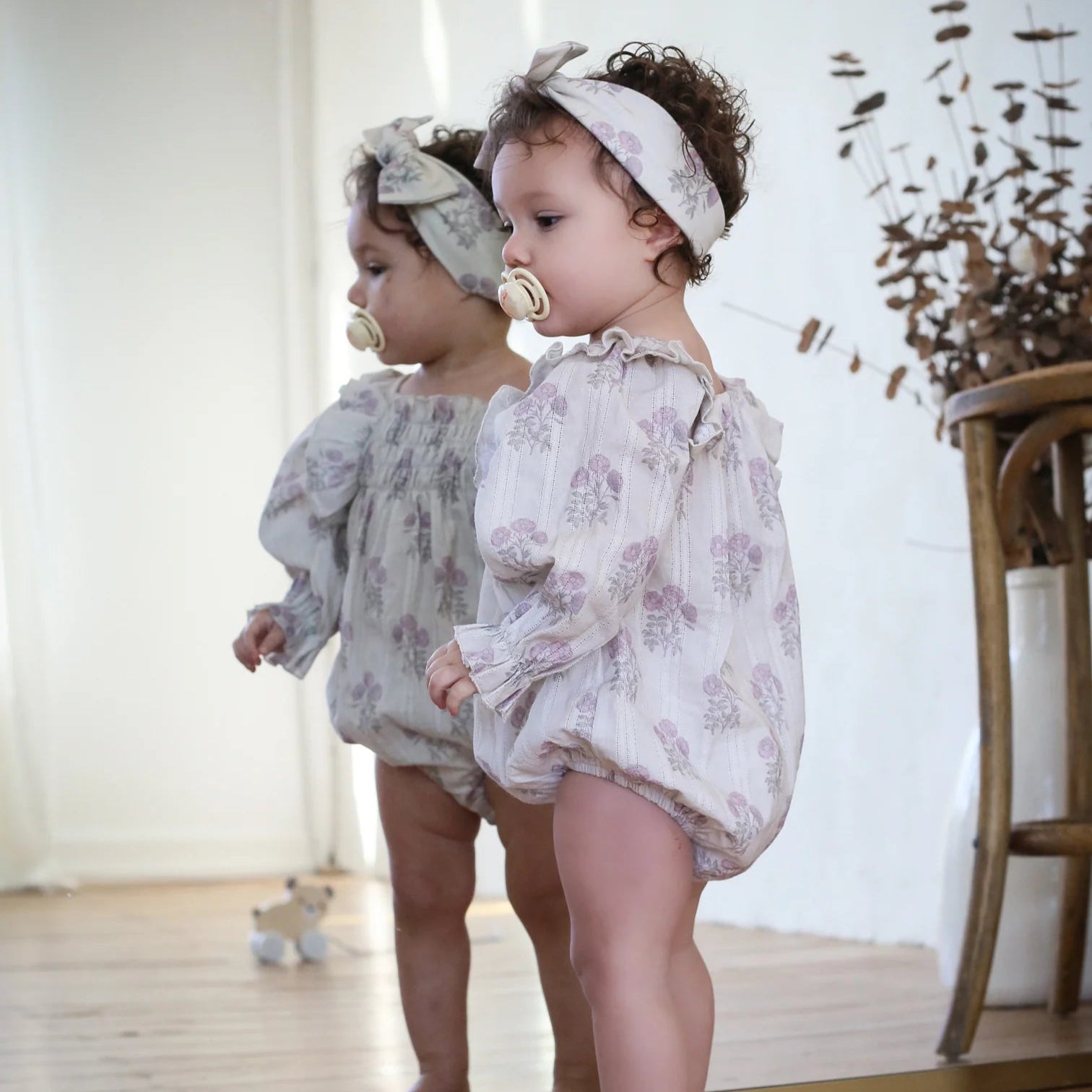 The Free Spirit Romper blends timeless style with playful details. Crafted from soft woven cotton, it features a smocked bodice...