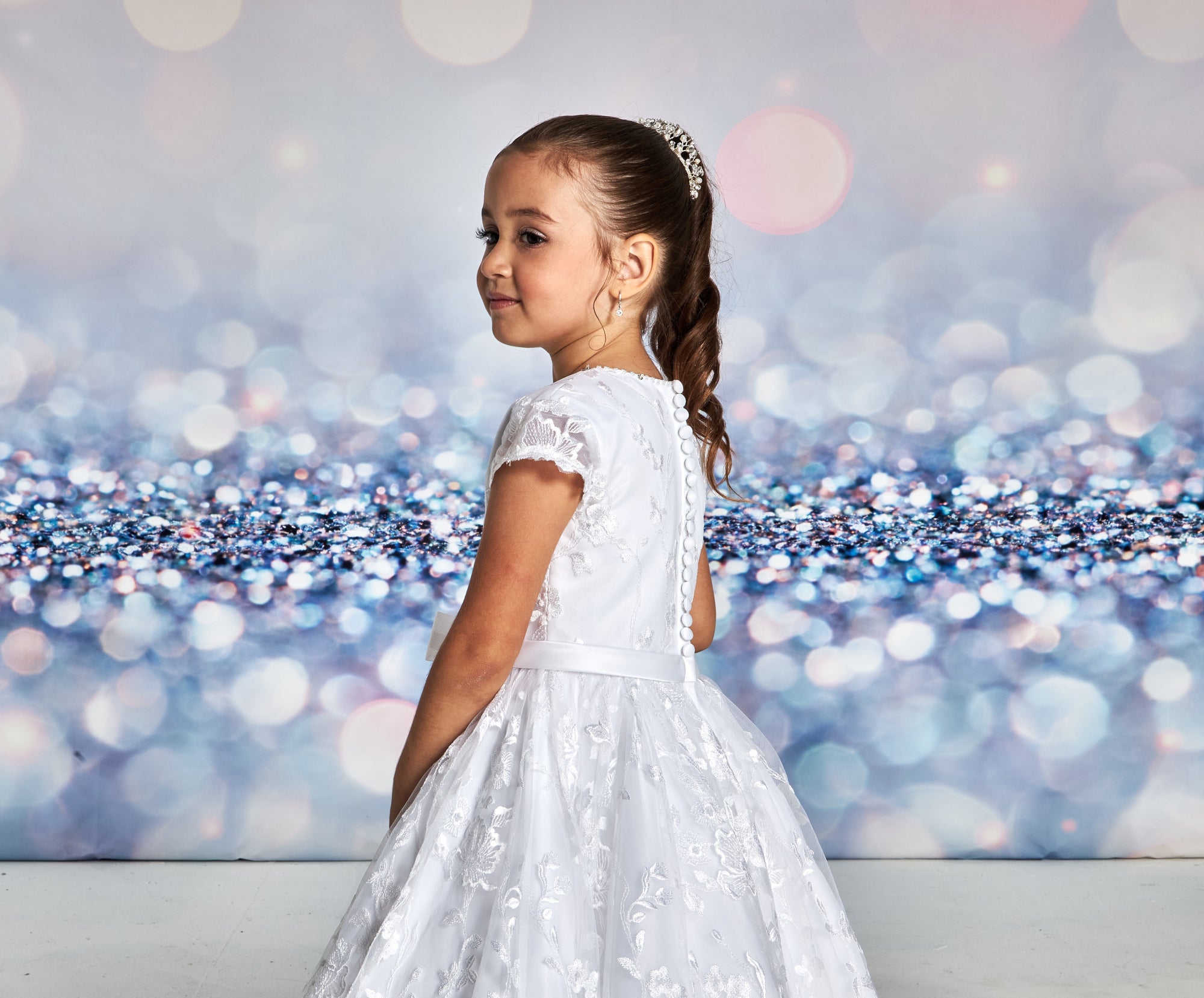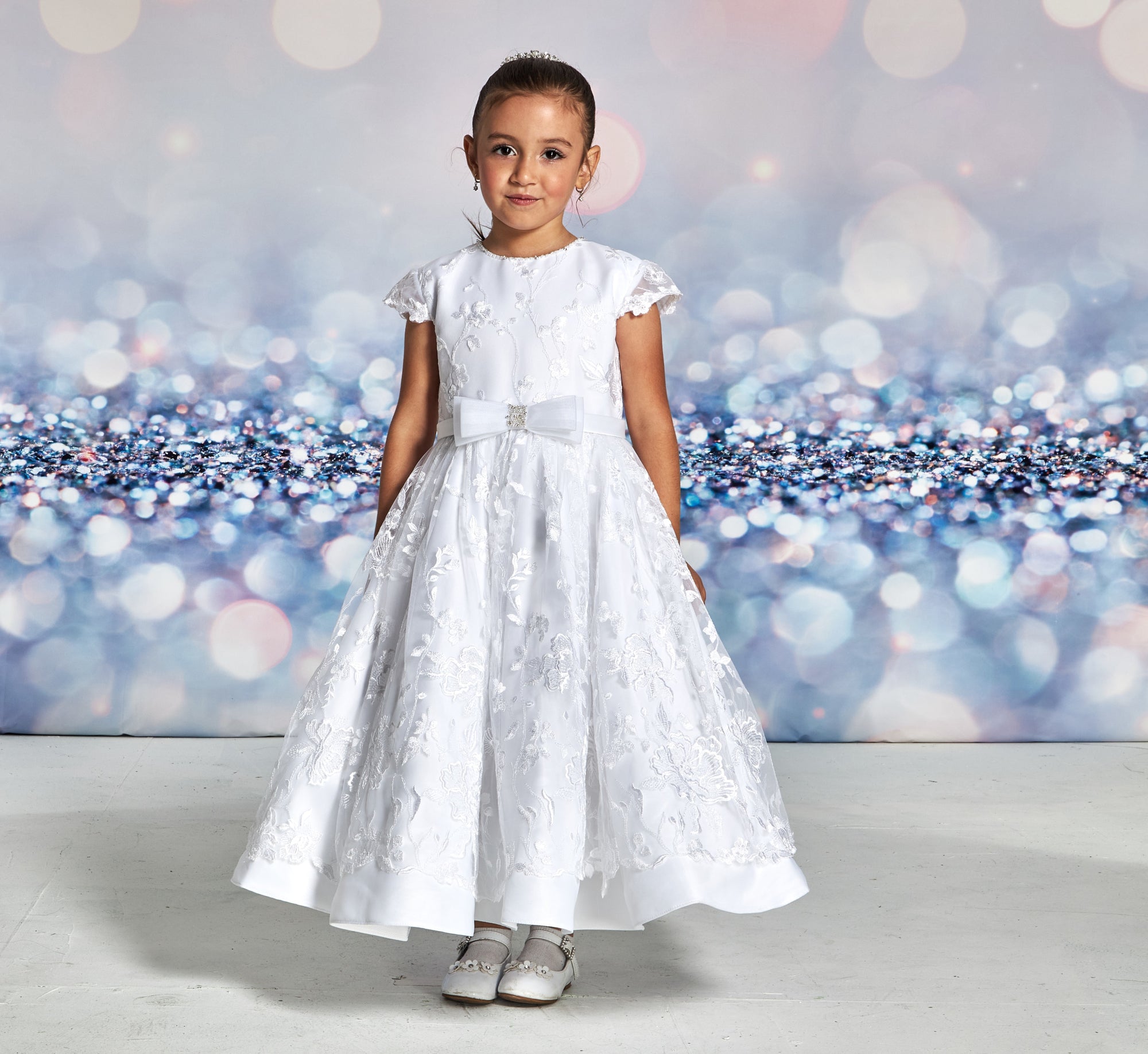 Introducing the Joan Calabrese Lace Dress, a delicate and sophisticated addition to your wardrobe. This dress features a stunning white cap sleeve design, adorned with elegant lace detailing throughout. The intricate skirt and bow at the waist add a touch of luxury to this timeless piece. Elevate your style with this exquisite dress.