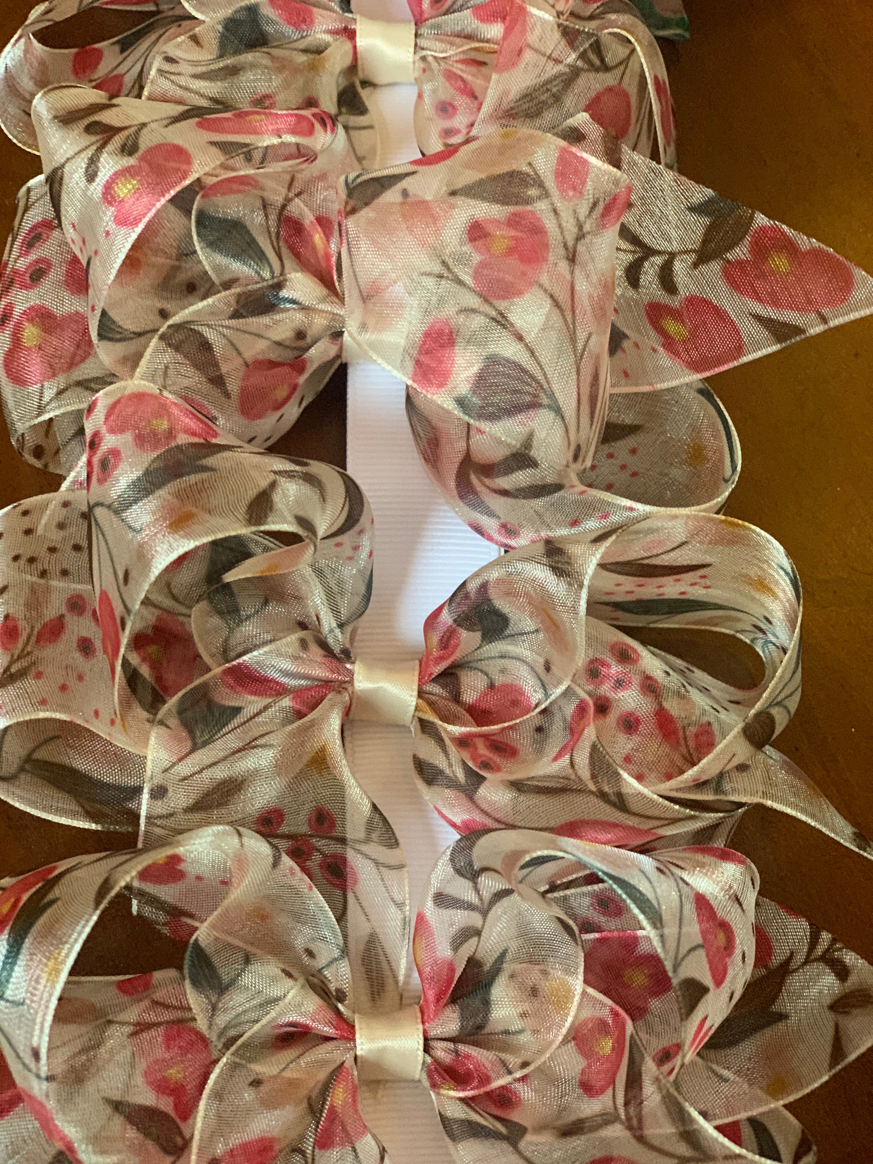 Standard size floral bow is 5” on a clip