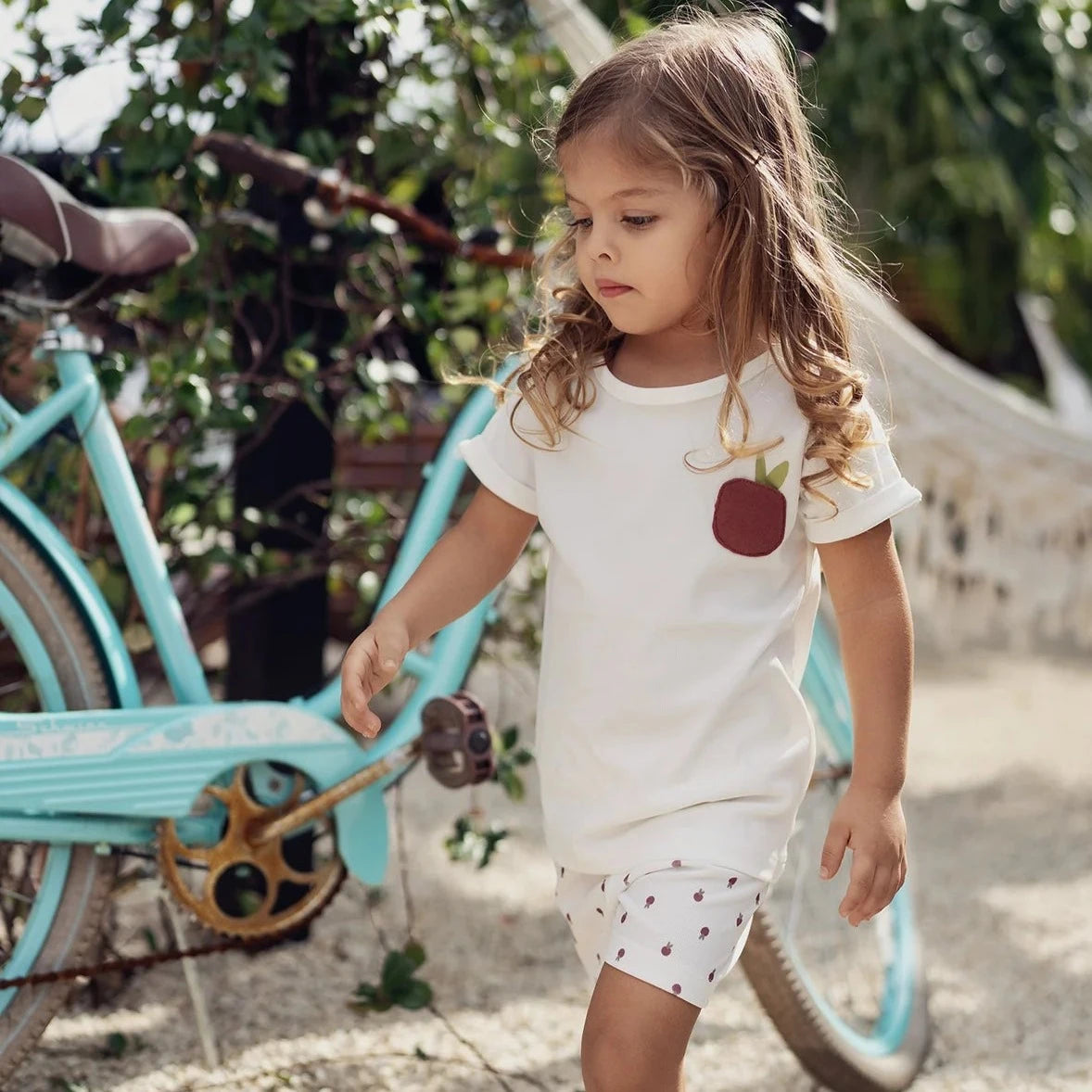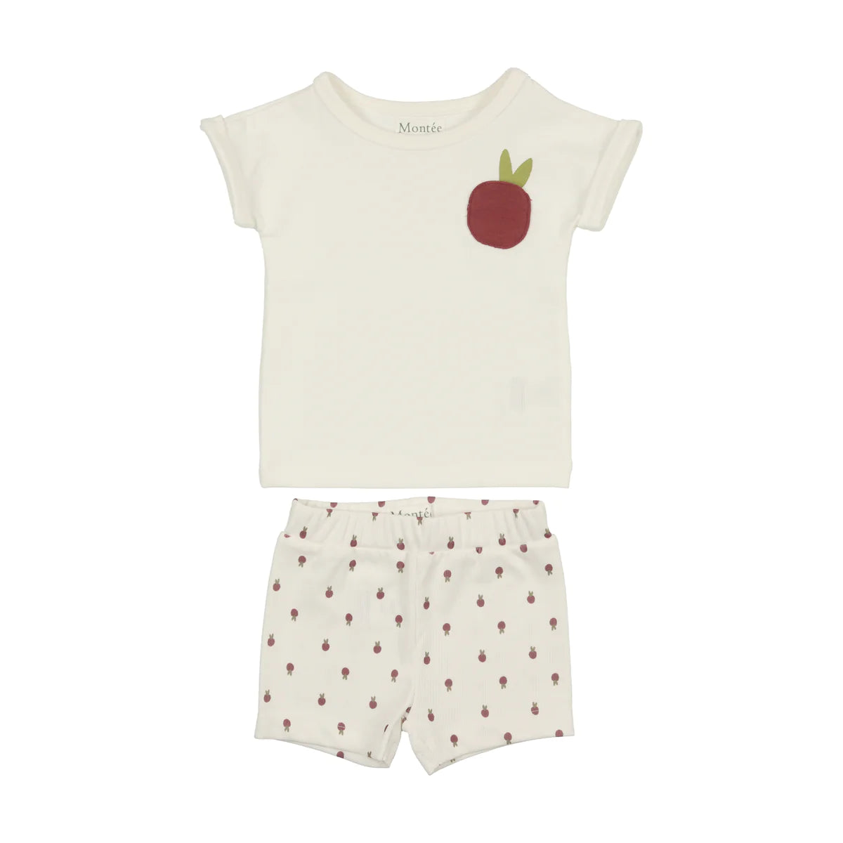 Get cozy and stylish with our White Ribbed Berry Short Set! Made with a soft ribbed fabric, this 2 piece set features a playful apple imprint for a touch of whimsy.