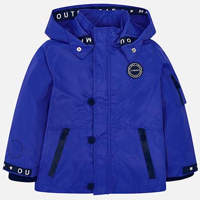 Long sleeved windbreaker jacket with detailing in a contrasting color for boy. Round neckline with contrasting details. Collar with hood....