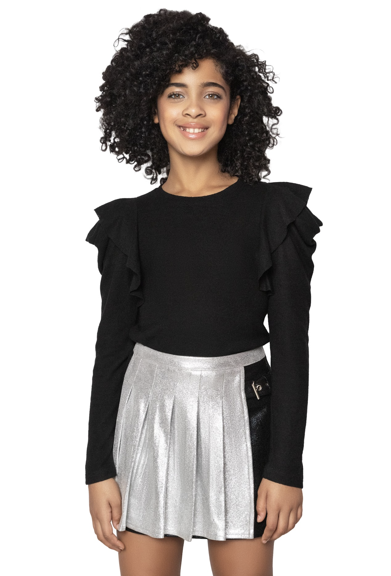 This beautiful Silver School Girl skirt is crafted with luxurious details, from the pleather detailing to the pleated design. Its silver and black color scheme give it a sophisticated, yet playful look, perfect for any special occasion.
