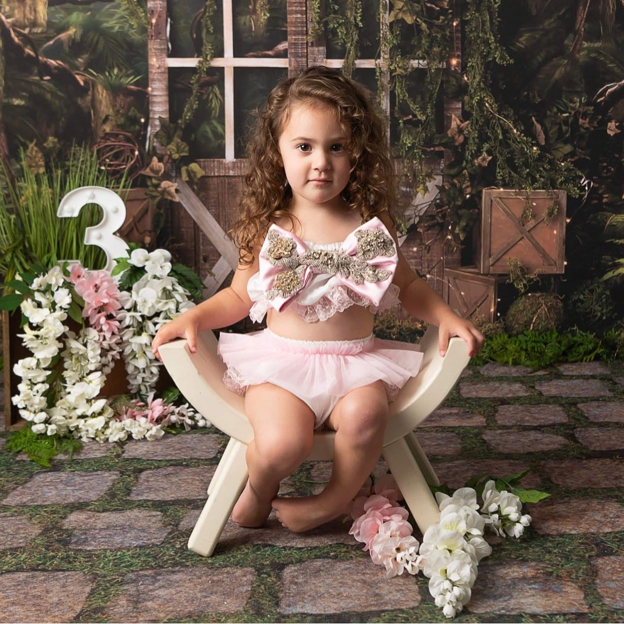 A fabulous pink bloomer set with beaded clip as part of the ensemble.