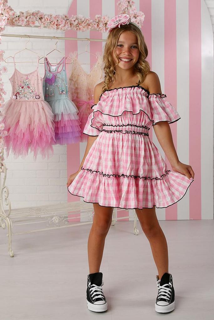 "Unleash your inner southern belle with our Pink Gingham Avery Dress. The off the shoulder ruffles add a playful touch to this charmingly classic piece. With this dress, you'll be the talk of the town at any springtime event."