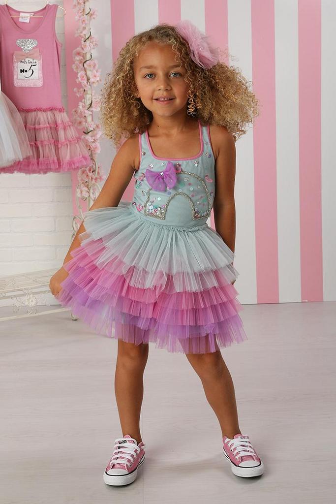"Get ready to brighten up your wardrobe with our Rainbow Dress! With its playful tulle skirt layered in a vibrant...